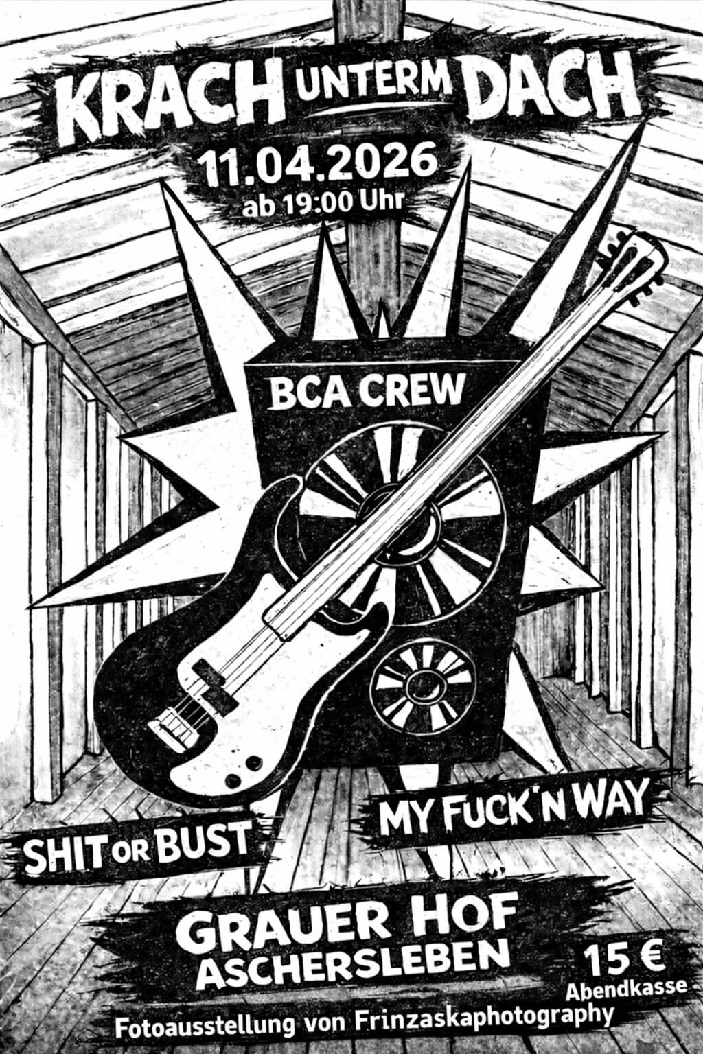 Krach unterm Dach mit BCA Crew, Shit or Bust, My Fuck`n`Way und einer Fotoausstellung von Frinzaskaphotography