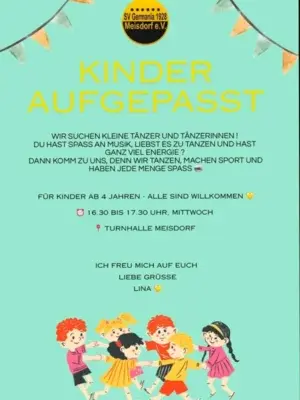 Um die Gruppe weiter auszubauen, werden tanzbegeisterte Nachwuchstalente gesucht. Interessierte Kinder ab 4 Jahren sind herzlich eingeladen, mittwochs ganz unverbindlich zum Schnuppern vorbeizukommen. Eine Anmeldung ist nicht erforderlich.