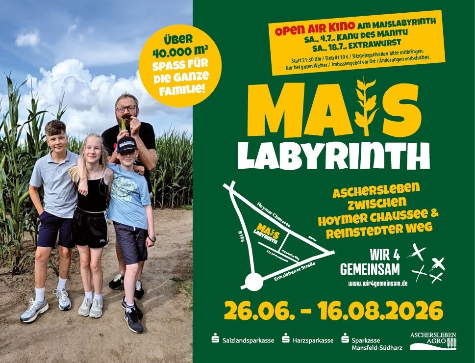 Zwischen Hoymer Chaussee, B 185 und Reinstedter Weg ist auf einer rund 3,5 Hektar großen Fläche der Agro Aschersleben die Aussaat für das neue Maislabyrinth von Wir4Gemeinsam erfolgt.